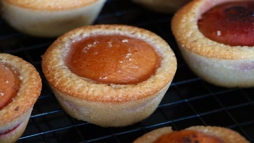 La recette traditionnelle des financiers est faite avec du beurre noisette. Pour cette variante aux abricots, c’est de l’huile d’olive qu’utilise Raf.